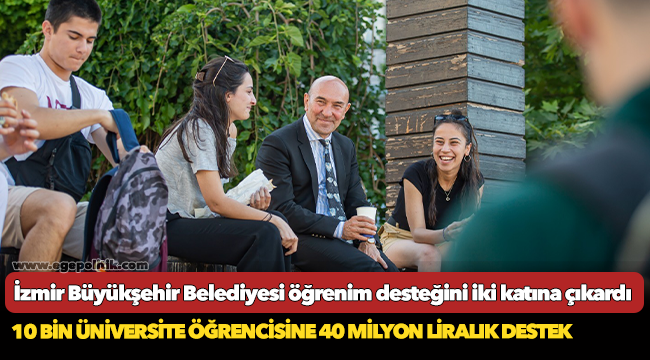 İzmir Büyükşehir Belediyesi’nin Başkan Tunç Soyer’in eğitimde fırsat eşitliği ilkesi kapsamında sürdürdüğü üniversite öğrencilerine maddi desteğini iki katına çıkarıyor. Büyükşehir Belediyesi 2022-2023 öğretim yılında ailesi İzmir’de ikamet eden 10 bin desteklenmesi gereken üniversite öğrencisine toplam 40 milyon TL’lik destek sağlayacak.