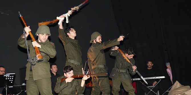 Daha sonra ise, Büyükşehir Belediyesi Şehir Tiyatrosu oyuncuları tarafından vatan savunmasında gözünü kırpmadan, geriye dönmeyi düşünmeden seve seve canlarını feda eden aziz şehitlerimizin destansı öyküsü sahnelendi. Tarihimizin en şerefli sayfalarından biri olduğu kadar dünya tarihinin de en dramatik savaşlarından biri olan Çanakkale Zaferi’nde atalarımızın ortaya koyduğu eşsiz mücadeleyi anlatan oyun salonu dolduran yüzlerce Manisalıya duygu dolu anlar yaşattı. Manisalıların beğeniyle takip ettiği oyunun sonunda Şehir Tiyatrosu Oyuncuları, izleyicilere Çanakkale Zaferi’nin tarihinin yazılı olduğu asker künyesi dağıttı.