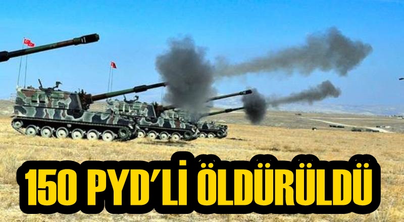 4 gündür süren top atışlarında 150 PYD'linin öldürüldüğü bildirildi.