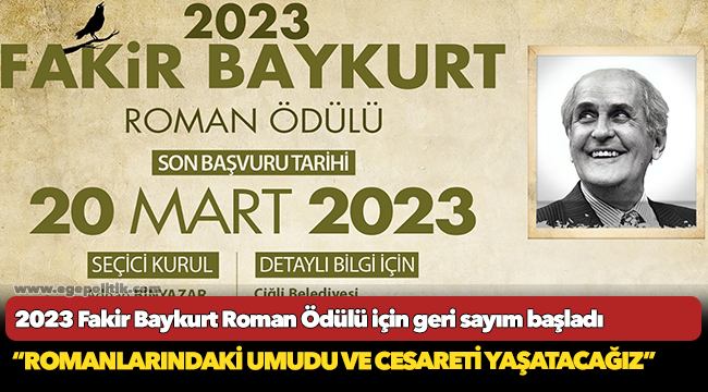 2023 Fakir Baykurt Roman Ödülü’ne katılmak isteyen yazarlar, Çiğli Belediyesi’nin hazırladığı şartnameye göre dosyalarını hazırlayarak 20 Mart 2023 tarihine kadar başvuruda bulunabilecek. Her yıl olduğu gibi bu yıl da Fakir Baykurt Roman Ödülü’nün Seçici Kurulunda; Adnan Binyazar, Bahri Karaduman, Hidayet Karakuş, Işık Baykurt ve Öner Yağcı bulunacak. Kazanan dosyaya verilecek ödül 20 Bin TL olarak belirlendi. Ayrıca kazanan dosya, Çiğli Belediyesi’nce kitap haline de getirilecek. Detaylı bilgi almak isteyenler Kültür ve Sosyal İşler Müdürlüğü’ne 0232 520 60 00 (2368) numaralı hattan veya [email protected] mail adresinden iletişime geçebilir.