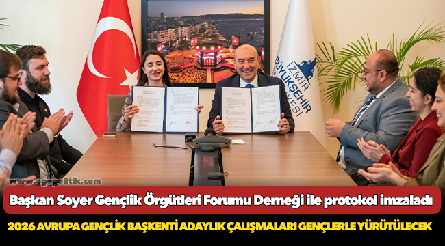 İzmir Büyükşehir Belediye Başkanı Tunç Soyer, gençlik politikası ve Avrupa Gençlik Başkenti başvurusu gibi konularda işbirliği yürütülen Gençlik Örgütleri Forumu Derneği ile protokol imzaladı. Soyer, İzmir’in 2026 Avrupa Gençlik Başkenti adaylığı için başvuru sürecini başlatacaklarını söyleyerek “Çok daha güçlü bir adaylık süreci yürüteceğiz” dedi.