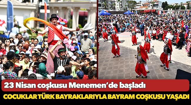 İzmir Büyükşehir Belediyesi’nin 23 Nisan Ulusal Egemenlik ve Çocuk Bayramı için kentin dört bir yanında düzenlediği etkinlikler Menemen’de başladı. Şenlik havasında kutlamaların olduğu Menemen’de çocuklar Atatürk Meydanı’nda ellerinde Türk bayraklarıyla yürüdü.