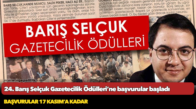 İzmir Büyükşehir Belediyesi tarafından 24’üncüsü düzenlenen Barış Selçuk Gazetecilik Yarışması için başvurular başladı. Barış Selçuk’un anısını yaşatmak ve genç gazetecileri teşvik etmek amacıyla düzenlenen Barış Selçuk Gazetecilik Ödülleri Yarışması’nda katılımcılar haber, fotoğraf ve görüntülerini, 17 Kasım 2023 Cuma gününe kadar İzmir Büyükşehir Belediyesi Basın Yayın ve Tanıtım Şube Müdürlüğü’ne ulaştırabilecek.
