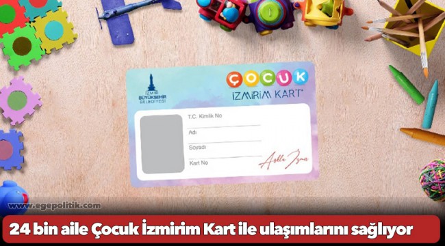 İzmir Büyükşehir Belediyesi tarafından 0-5 yaş arası çocuğu olan ihtiyaç sahibi ailelere ayda 10 kez ücretsiz ulaşım olanağı sağlayan Çocuk İzmirim Kart'tan yararlananların sayısı 24 bini buldu.