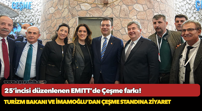 Sektörün önde gelen ve ziyaretçilerinin uğrak yeri olan stantta, Çeşme Belediye Başkanı M. Ekrem Oran’ın ağırladığı ziyaretçiler arasında Turizm Bakanı Mehmet Nuri Ersoy, İstanbul Büyükşehir Belediye Başkanı Ekrem İmamoğlu da vardı. 4000 yıllık tarihi, doğası ve samimiyetiyle, yeryüzü cenneti ve turizm destinasyonlarının önde gelen kenti Çeşme standını ziyaret eden Ekrem İmamoğlu, Çeşme’nin turizmdeki önemine vurgu yaparak, “Turizm sektöründeki zorlu süreci, ortak akıl ve işbirlikleri ile daha kolay aşabileceğimize inanıyoruz” dedi.