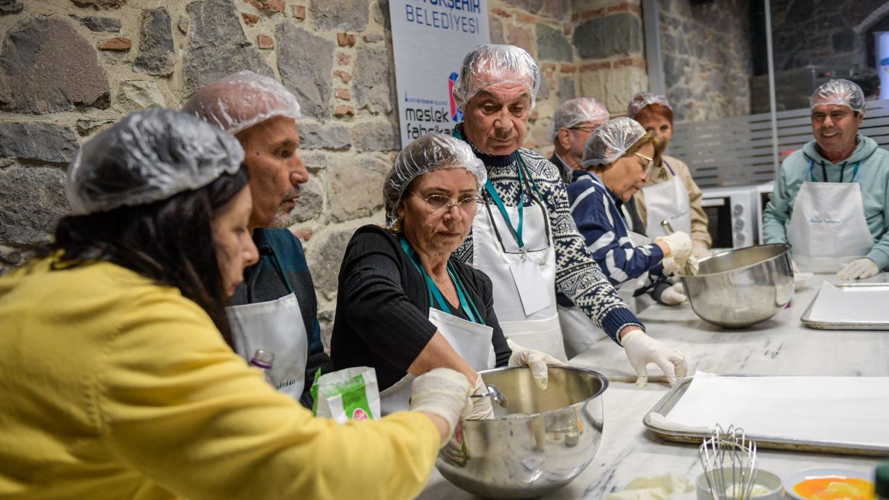 İzmir Büyükşehir Belediyesi tarafından 60 yaş ve üstü yurttaşların iyi olma halini ve yaşam boyu öğrenmelerini desteklemek amacıyla başlatılan 3. Yaş Üniversitesi’nin seçmeli dersleri ilgi çekiyor. Sağlık İşleri Dairesi Başkanlığı Sağlık Eğitimleri Şube Müdürlüğü tarafından organize edilen ve Meslek Fabrikası’nda verilen teorik eğitimlerin yanı sıra uygulamalı eğitimler de öğrencilerin hayatlarında fark yaratıyor. Seçmeli ders olarak “Mutfak Atölyesi”ni seçen 60 yaş üstü öğrenciler, diyetisyen eşliğinde her hafta sağlıklı yemeklerin yapımını öğreniyor. İlk hafta çıtır kabak yemeği yapmayı öğrenen katılımcılar, bu hafta da çay eşliğinde yemek üzere grissini yapmayı öğrendi.