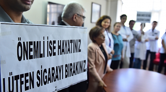 Eşrefpaşa Hastanesi sağlık personelinin ‘Sigarasız Bir Hayat’ için başlattıkları kampanyaya en büyük destek, İzmir Büyükşehir Belediye Başkanı Aziz Kocaoğlu’nun eşi Dr. Türkegül Kocaoğlu'ndan geldi. Hastane yönetimi ve sigarayı bırakan personeli duyarlılıkları nedeniyle kutlayan Dr. Kocaoğlu, “Sigarayla mücadele, hayatın her aşamasında sürdürülmeli. İlk başta da biz sağlıkçılar sigarayı bırakmalıyız" diye konuştu.