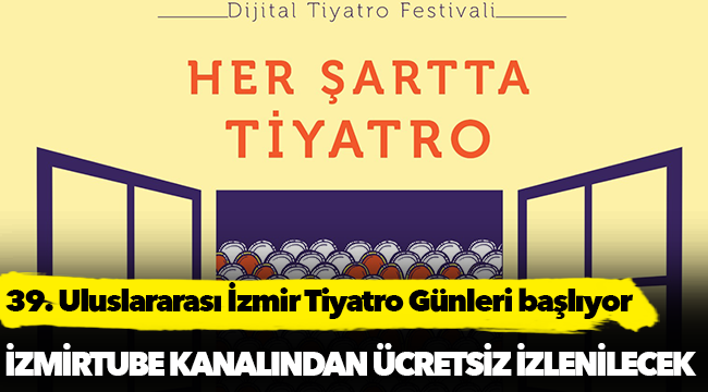 İzmir Büyükşehir Belediyesi tarafından bu yıl 39’uncusu düzenlenen İzmir Tiyatro Günleri 25 Mayıs–25 Haziran tarihlerinde internet üzerinden evlere konuk olacak. Pandemi koşulları sebebiyle ertelenen tiyatro günleri kapsamındaki oyunların tamamı İzmirTube üzerinden yayınlanacak. İzmir Büyükşehir Belediye Başkanı Tunç Soyer, “Pandemi koşullarından dolayı salonlarda perde açamıyorsak evlerde perde açarız. Her şartta tiyatro, diyoruz” diye konuştu.