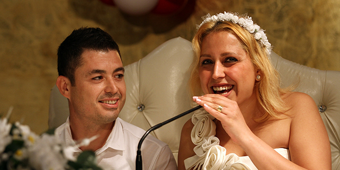 Konak Belediyesi Türk Medeni Kanunu’nun kabul edilişinin 90. yılında maddi imkansızlıklar yüzünden evlenemeyen ya da nikah kıyamayan 49 çift için toplu nikah töreni düzenledi. Konak Belediyesi’nin Eşrefpaşa Evlendirme Dairesi’nde düzenlenen törende mutluluklarını ‘resmileştiren’ çiftler arasında iki de Suriyeli çift vardı.
