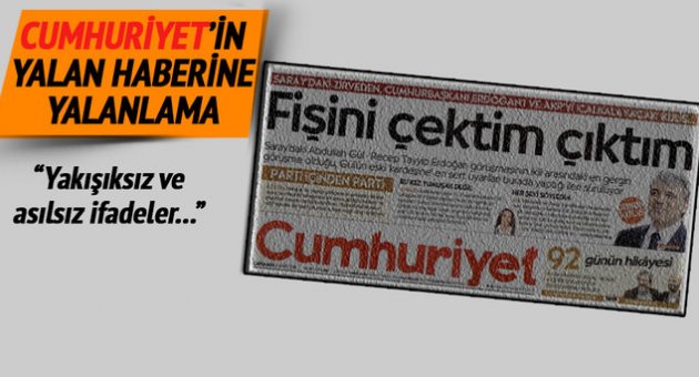 11. Cumhurbaşkanı Abdullah Gül, Cumhuriyet gazetesinin sürmanşetinden duyurduğu yalan habere 11. Cumhurbaşkanlığı ofisi resmi Twitter hesabından cevap verdi. Açıklamada Cumhuriyet gazetesinde yer alan iddiaların asılsız ve yakışıksız olduğu vurgulandı.