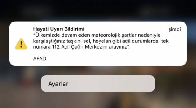 “Ülkemizde devam eden meteorolojik şartlar nedeniyle karşılaştığınız taşkın, sel, heyelan gibi acil durumlarda tek numara 112 acil çağrı merkezini arayınız.”