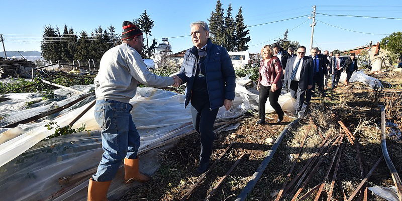 İzmir Büyükşehir Belediyesi, yaşanan doğal afetlerden olumsuz etkilenen Menderes ve Kirazlı üreticilere sahip çıktı. Belediye Meclisi'nde onaylanan karara göre Büyükşehir Belediyesi, Ocak ayında Menderes'te gerçekleşen kar yağışı ve don olayından seraları zarar gören üreticilere maddi destekte bulunacak. Büyükşehir Belediyesi ekipleri tarafından yapılan hasar tespiti doğrultusunda, üreticilere uğradıkları zarar oranına göre destek verilecek. Bu kapsamda, yüzde 20’ye kadar zarar gören üreticiye bin TL, yüzde 21 ile 40 arasında zarar gören üreticiye 2 bin T L, yüzde 41 ile 60 arasında zarar gören üreticiye 3 bin TL, yüzde 61 ile 80 arasında zarar gören üreticiye 4 bin TL, yüzde 81 ile 100 arasında zarar görenlere 5 bin lira maddi destekte bulunulacak.