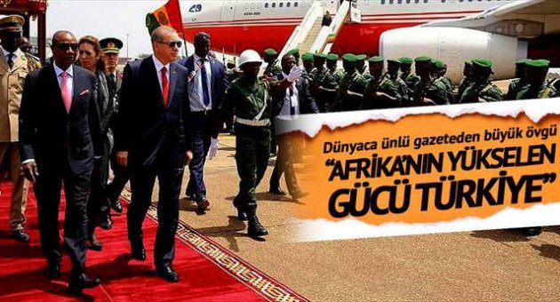 Cumhurbaşkanı Recep Tayyip Erdoğan'ın Afrika gezisi üzerine bir analiz yayımlayan Fransız Le Monde gazetesi, Ankara'nın Afrika politikalarını öven tespitlerde bulundu. Erdoğan'a 200 kişilik bir girişimciler ordusunun eşlik ettiğini aktaran gazete, başarılı diplomasinin sonucu olarak ise "Türkiye Afrika'yla 2003 yılında 5.3 milyar dolar seviyesinde olan ticaret hacmini 2014'te 23.4 milyar dolara çıkardı" ifadelerini kullandı. Elise Barthet imzalı haberde özellikle AK Parti döneminde gelişen ilişkilerin altı çizildi ve 2008'de 12 elçiliği bulunan Türkiye'nin, Afrika'da artık 39 temsilciliğinin bulunduğu belirtildi. Türkiye'nin bu iyi ilişkiler sonucunda Afrika ülkelerinin desteğini kazandığı ve Birleşmiş Milletler Güvenlik Konseyi'nin geçici üyelerinden biri olduğu aktarıldı. Le Monde, ara başlığında "Somalili Erdoğan" ifadelerine yer verirken, Türkiye'nin bölgedeki etkisinin arttığını belirtti.