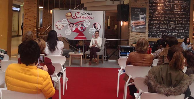 Agora sohbetleri ve Agora kadınlar kulübünün bu hafta ki konuğu Özel Derim Dermatoloji Dal Merkezi'nin Uzman Dermatoloğu Dr. Melda Demirtaşoğlu oldu. Demirtaşoğlu, söyleşisinde katılımcılara yaş gruplarına göre cilt bakım yöntemleri aktarırken, gençler için ileriki yaşlarda ciltte oluşabilecek kırışıklıkları önleyici teknikleri anlatmanın yanı sıra, orta yaşlı ziyaretçiler için ise kırışıklıkları gidermede kullanılan tedavileri paylaştı. Ayrıca, lazerle cilt yenileme tedavilerinde kırışıklıkların tedavisi ve deri sarkmalarının giderilmesinin kişiyi sosyal yaşamdan alıkoymadan, kısa sürede geçebilen kızarık ve soyulma dışında herhangi bir yara gelişmeden olduğunun altını çizdi.. Tüm bayanların ilgisini çeken botox yöntemi ile ilgili de bilgi paylaşarak, söyleşi sonrasında da katılımcıların merak ettikleri konularda sorularını cevapladı. Uzman Dr. Melda Demirtaşoğlu, cilt yenileme işleminin uzman dermatologlar tarafından ve tamamen steril bir ortamda yapılması gerektiğini dinleyicilere aktarırken; sivilce izleri, çillenme, yara izleri ve damar çatlamaları gibi izlerinde bu yöntem ile yok edilebildiğini sözlerine ekledi.