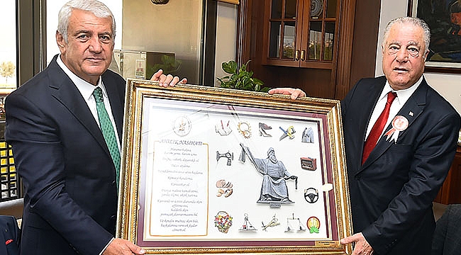 Esnaf teşkilatı olarak İzmir Büyükşehir Belediyesi'nin desteğini her zaman hissettiklerini belirten Zekeriya Mutlu, "129 odamız ve binlerce esnaf adına sizlere teşekkür ediyorum" dedi. Mutlu ziyaret anısına, üzerinde meslekleri simgeleyen objeler bulunan ve ahilik nasihatlerinin yazılı olduğu bir tablo hediye etti.