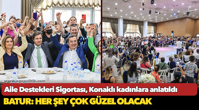 Konak Belediye Başkanı Abdül Batur, CHP Konak İlçe Başkanlığı’nın kadınlara yönelik düzenlediği Aile Destekleri Sigortası bilgilendirme toplantısına katıldı. Toros Sosyal Tesislerinde gerçekleştirilen buluşmaya Başkan Batur’la birlikte TBMM Başkanlık Divanı Kâtip Üyesi ve CHP İzmir Milletvekili Sevda Erdan Kılıç, CHP İzmir İl Başkanı Deniz Yücel, CHP Konak İlçe Başkanı Akın Küçükoğullarından, CHP İzmir İl Kadın Kolları Başkanı Nurdan Şenkal Uçar, CHP Konak İlçe Kadın Kolları Başkanı Nurten Serhadbeyi, Gençlik Kolları, Konak Belediyesi Meclis Üyeleri ve muhtarlar katıldı. Konak’ın dört bir yanından kadınların, Aile Destekleri Sigortası hakkında bilgilendirdiği etkinliğin bitiminde Sanatçı Mikrop Hikmet de sahne aldı. Başkan Batur, “Her şey çok güzel olacak” vurgusu yaptığı konuşmasında “Sizlere verdiğimiz sözlerin hepsini yerine getireceğiz. Bizlere güvenin, biz sizlere çok güveniyoruz. Yolumuz açık olsun. Her şey çok güzel olacak, her şey çok güzel olacak, her şey çok güzel olacak!” dedi.