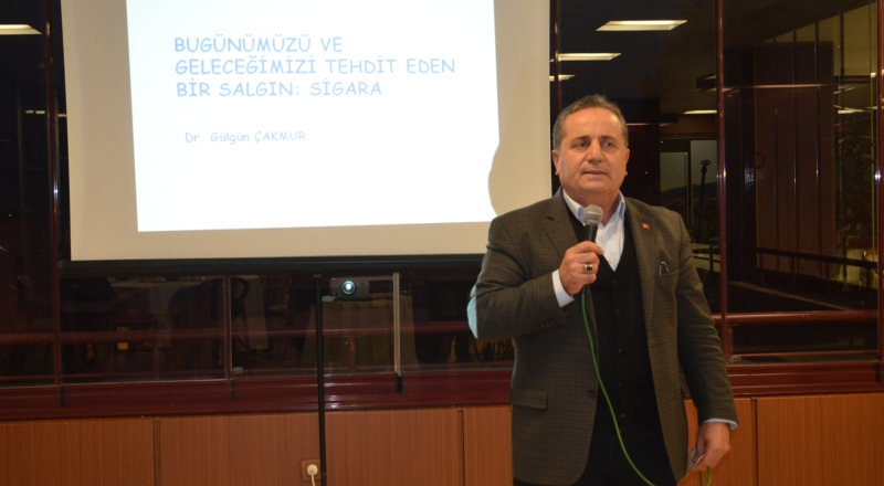 Dr. Çakmur sigaranın sağlığa olan zararlarıyla ile ilgili detaylı bilgiler verdi. Konferans sonunda AK Parti ilçe başkanı Aslan Bilgi katkılarından dolayı Dr. Gülgün Çakmur’a teşekkür etti ve Türk bayrağı hediye etti.
