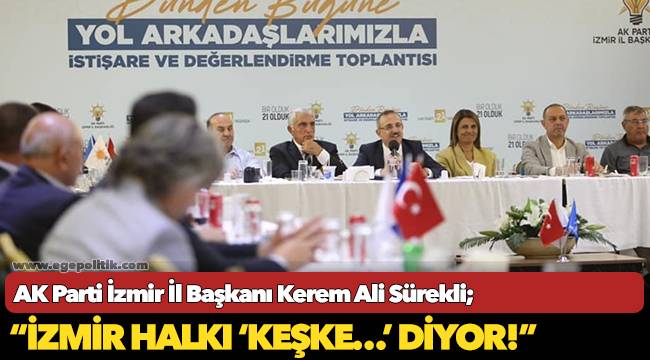 AK Parti İzmir İl Başkanlığı’nın vefa buluşmaları programı kapsamında, partinin önceki dönem Yerel Seçimlerinin Belediye Başkan Adaylarıyla bir araya gelindi. İl Başkanı Kerem Ali Sürekli’nin başkanlık yaptığı toplantıda, seçimlerden bu yana ilçelerdeki yerel hizmetler, sorunlar ve çözüm önerileri de masaya yatırıldı. Belediye Başkan adaylarının birbirinden nitelikli olduğunu belirten Sürekli; “Bu hem vefa hem de yakın geleceği planlama buluşmasıydı. Her biriniz siyasette ve mesleklerinde aktif; millete hizmet aşkından taviz vermeyen arkadaşlarımızsınız. Yerel seçimlerin üzerinden neredeyse 3,5 yıl geçti. Eş zamanlı ve karınca modeli çalışmalarımızda en çok tercihinde pişmanlık duyan seçmen bizi durduruyor. İzmir halkı ‘keşke…’ diyor. Yerel hizmete o kadar aç kaldılar ki, sorunlar o kadar aştı ki boylarını; ‘Keşke, AK Parti’nin Adayına oy verseydim.’ diyenlerin sayısı giderek artıyor.” ifadelerini kullandı.