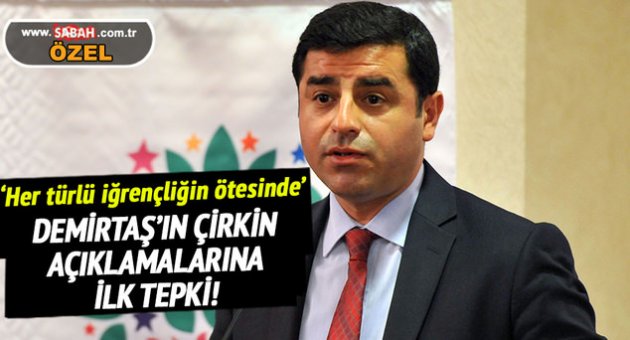 "Eli kanlı terör örgütü PKK'nın eli ve dili kanlı siyasi tetikçisi Selahattin Demirtaş kendi zalimliklerini, kendi katliamcılıklarını gizlemek için Cumhurbaşkanımıza ve Başbakanımıza hakaretlerde bulunuyor. Bu iğrenç kişiliğin diline doladığı kelimeler her türlü iğrençliğin ötesindedir. İnsan kanından beslenen bir terör örgütünün siyasi sözcülüğünü yapan Demirtaş'ın insanlıktan ve Müslümanlıktan bahsetmesi en hafif tabirle bir iki yüzlülüktür."