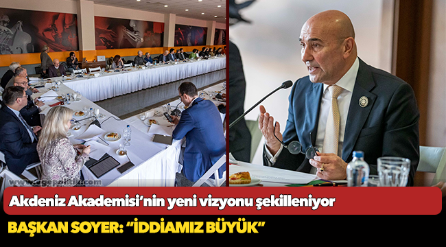 İzmir Büyükşehir Belediye Başkanı Tunç Soyer, Büyükşehir Belediyesi bünyesinde faaliyet gösteren İzmir Akdeniz Akademisi’nin akademik kurul toplantısına ev sahipliği yaptı. Ahmed Adnan Saygun Sanat Merkezi’nde (AASSM) bilim insanları, uzmanlar, akademisyenler ve belediye bürokratlarının katıldığı toplantıda, önceki buluşmada oluşturulan 10 kişilik çalışma grubunun hazırladığı yeni vizyon önerileri masaya yatırıldı. Başkan Tunç Soyer, çalışma grubunun taslak programını başarılı bulduğunu söylerken, katılımcıların eklemek istediği talep ve önerileri not aldı.