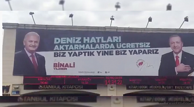 CHP'li Yarkadaş, dün iskelenin üzerine asılı olan Yıldırım pankartına dikkati çekmişti. "Acaba oraya Ekrem İmamoğlu'nun resminin asılması istenseydi acaba izin verilecek miydi?" diye soran Yarkadaş, "Maalesef seçimler böyle tarihe geçecek" diye konuşmuştu.