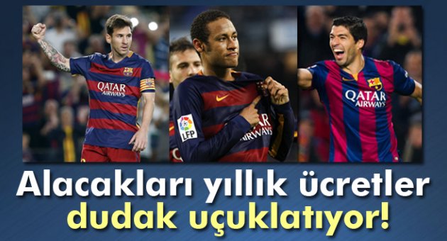 Messi, Neymar ve Suarez'in 2016 yılında yapılması planlanan yeni sözleşmelerine göre alacakları toplam ücret 100 milyon Euro'yu bulacak.