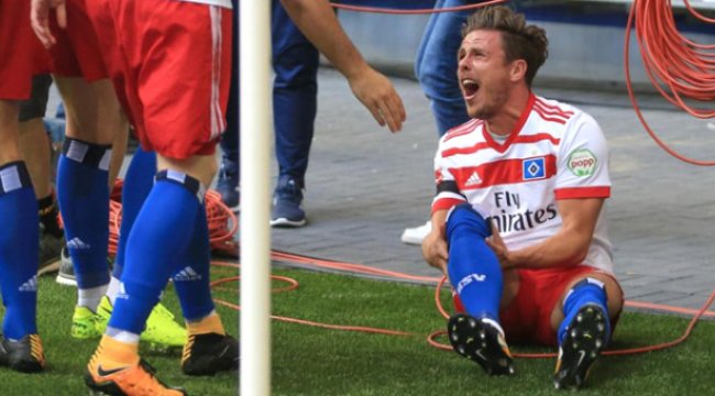 Almanya'da Hamburg forması giyen Nicolai Müller, Augsburg'la karşılaştığı mücadelede attığı gol sonrası sevinirken çapraz bağlarını kopardı, en az 7 ay oynayamayacak.
