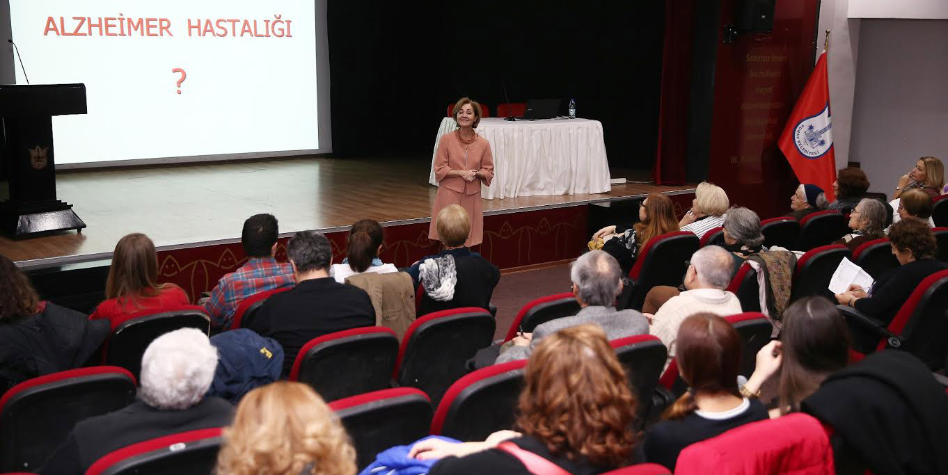 Konak Belediyesi ile Türkiye Alzheimer Derneği İzmir Şubesi’nin ortaklaşa düzenlediği ‘Alzheimer Hastalığı ile Yaşam’ konulu eğitim ve dayanışma etkinliği Alsancak Türkan Saylan Kültür Merkezi’nde yapıldı. Türkiye Alzheimer Derneği İzmir Şubesi eski başkanlarından Uzman Dr. Aysel Gürsoy’un konuşmacı olarak katıldığı seminerde Alzheimer’in nasıl bir hastalık olduğu, hangi yaş gruplarında görüldüğü, belirtilerinin neler olduğu ve hastalığı önleme yöntemleri anlattı.