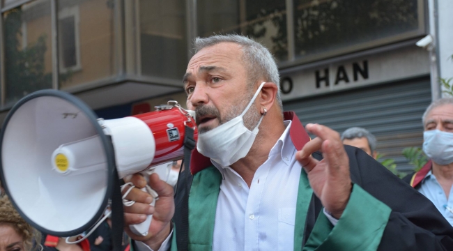 Megafonla polislere seslenen İzmir Barosu Başkanı Av. Özkan Yücel, anayasal bir hakkı kullanmamıza engel olarak “suç işliyorsunuz. İzmir’e bunu yaşatmaya hakkınız yok” dedi.