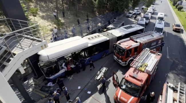 Kontrolden çıkan hafif ticari araç, önünde bulunan iki otomobile çarparak durabildi. Yoldan çıkan EGO otobüsü ise üst geçidin beton bariyerine çarptı.