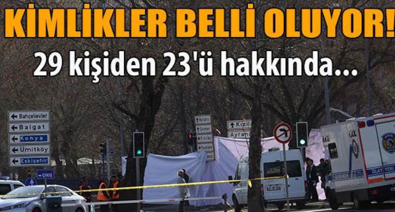 Başkent'teki terör saldırısında hayatını kaybeden 5 kişinin isimleri belli oldu. Keçiören Adli Tıp Kurumu'na gelerek bilgi alan CHP Ankara Milletvekili Sarıhan, daha sonra yaptığı açıklamada, "Şu anda Adli Tıp'ta 29 yaşamını yitirmiş insanımız var. 29 kişiden 23'ü hakkında henüz kimlik saptaması yapılamadı. 5 kişinin kimlik tespitleri yapılmış. Bunlar Cumali Akman, Ayşegül Pürnek, Gülşen Yıldız, Özgür Orçun ve Feyyaz İlhan'dır. Bu kişilerin kimlik saptamaları yapılarak ailelerine teslim edilmişler. Diğer 23 kişinin biri ile ilgili eylemci olduğu yönünde Adli Tıp'ın bir saptaması var" dedi.