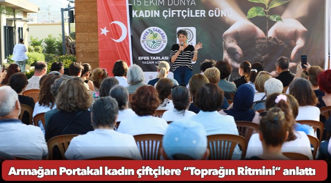 15 Ekim Dünya Kadın Çiftçiler Günü’nde Efes Tarlası Yaşam Köyü’nde olmaktan mutluluk duyduğunu belirten Armağan Portakal; “Efes Tarlası Yaşam Köyü’nden olağanüstü etkilendim. Burada her şey çok güzel tasarlanmış. Burada eğitimler hakkında bilgi aldım. Burası bir açık laboratuvar gibi. Selçuk’un sahili, geçmişi ve karakteri korunmuş. Bunları görmekten dolayı da çok mutlu oldum. Önemli olan bugün JES’E direnişiz. Çünkü biz toprak ve suyu sonsuz zannediyoruz. Ama sonsuz değil. Bir santim toprağın meydana gelmesi yüzlerce, binlerce yıldır devam eden bir sürece işaret ediyor. Biz her ağacı kestiğimizde, toprağa her kazma vurduğumuzda, her betonu diktiğimizde geleceğimizden kesin ve geri dönüşü olmayan bir şeyler kaybediyoruz. Biz sahip çıktığımız sürece bir geleceğimiz var” dedi.