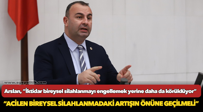 Cumhurbaşkanı Yardımcısı Cevdet Yılmaz’ın yanıtlaması istemiyle TBMM Başkanlığına soru önergesi veren Arslan, “Ülkemizde bireysel silahlanma 2018 yılından sonra yüzde 100 ’ün üzerinde artmış, enflasyon, geçim sıkıntısı, pahalılık, yolsuzluk gibi önemli ekonomik ve sosyal sorunlarımızın yanı sıra, güncel ve toplumsal sorunlarımızdan biri haline gelmiştir. Kamu otoritesinin zayıflaması, feodal ilişkiler, toplumdaki değer yargıları ve psikolojik faktörler bireysel silahlanmada ki artışın başlıca nedenleri arasındadır” ifadelerini kullandı.