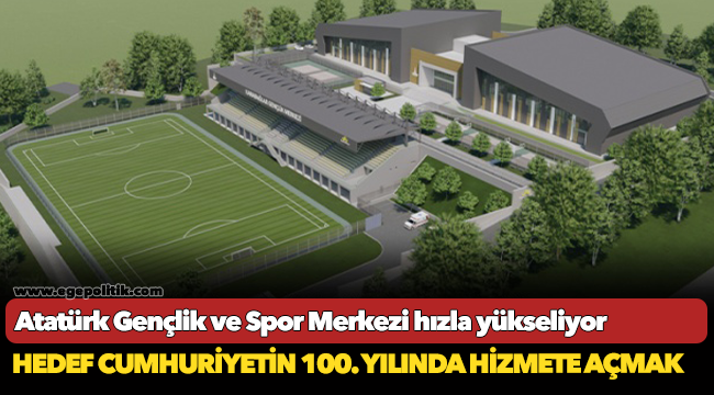 Karabağlar Belediyesi'nin gençleri sporla buluşturarak kötü alışkanlıklardan uzak tutmak amacıyla projelendirdiği ve İzmir Büyükşehir Belediyesi işbirliğiyle yapımını sürdürdüğü Atatürk Gençlik ve Spor Merkezi'nin inşaatı hızla yükseliyor.