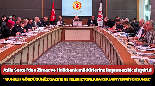 CHP grubu tarafından KİT Komisyonu raporlarına yapılan itirazların görüşüldüğü toplantıda konuşan CHP İzmir Milletvekili Atila Sertel, Halkbank Genel Müdürü Osman Arslan ve Ziraat Bankası Genel Müdürü Alpaslan Çakar’a gazete ve televizyonlara verdikleri reklamlar üzerinden eleştiride bulundu.