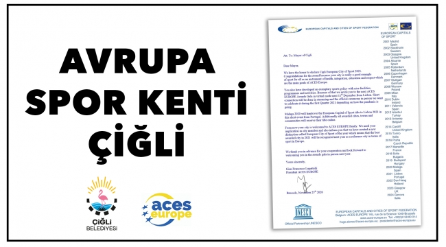 Çiğli Belediyesi’ne gönderilen resmi yazıda Çiğli’nin resmi olarak 2021 Avrupa Spor Kenti olduğu ilan edildi. Duyuru ve tebrik mahiyetindeki mektupta ayrıca Çiğli’deki sportif özellikleri açısından sağlık, entegrasyon, eğitim ve uyum gibi konularda ACES Europe’un ana hedeflerine son derece uygun olduğu da belirtildi. Böylece Çiğli Belediyesi, İzmir’de “Avrupa Spor Kenti” ödülünü alan ilk belediye olarak önemli bir başarıya imza attı.