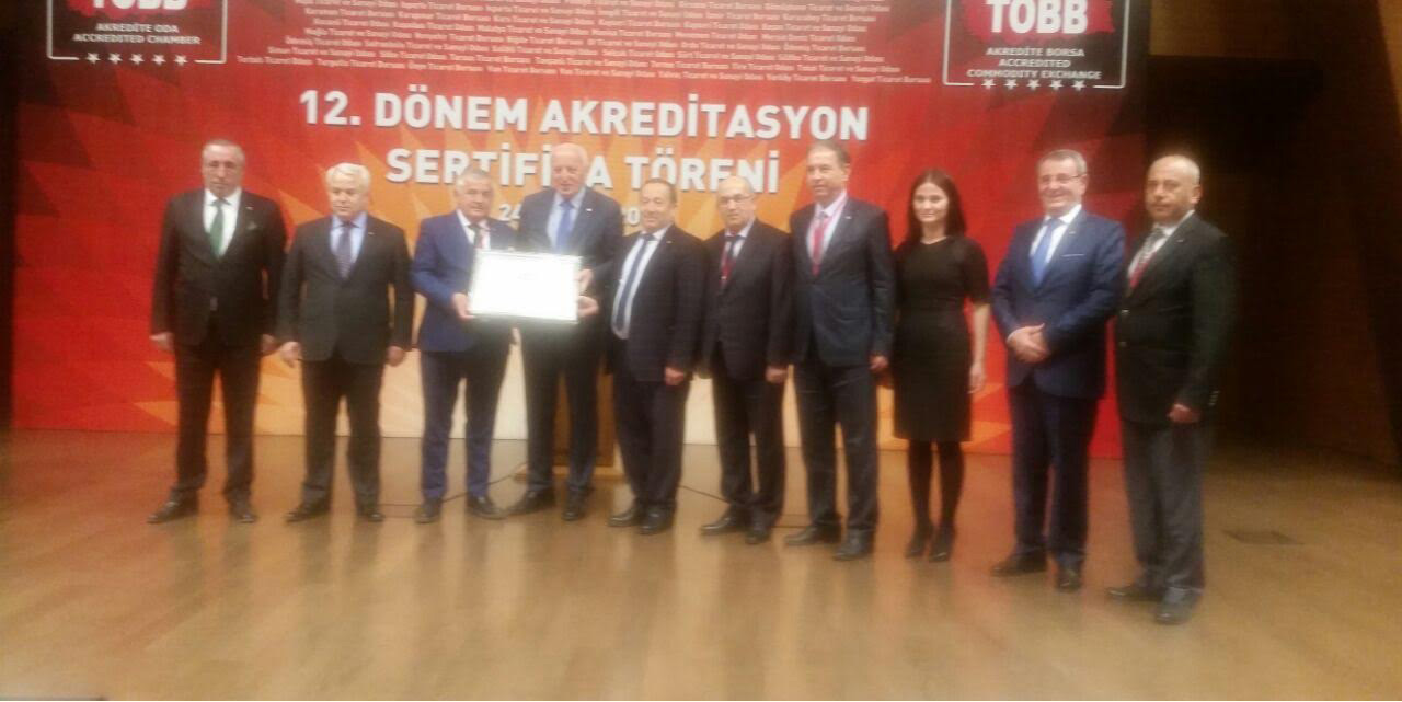12. Dönem Akreditasyon Sertifika Töreni’nde konuşan TOBB Başkanı M. Rifat Hisarcıklıoğlu, Türkiye’nin en büyük zenginliğinin girişimci tüccar ve sanayiciler olduğunun altını çizerken, yapılan törenle birlikte 26 Oda ve Borsa’nın daha, 5 yıldız kapsamına girmeye hak kazandığını söyledi.Ayıca 54 Oda ve Borsanın akreditasyonunu yenilendiğini belirten Hisarcıklıoğlu”1 adet Odamız da akreditasyon seviyesini yükseltti. Esasında onlar, kendilerini dönüştürdüler ve geliştirdiler. Reel sektör için hizmet üreten ve sunan merkezler haline geldiler. Proje üretiyorlar, yurtdışına açılıyorlar, reel sektöre işin hakkını vererek kanaat önderi oluyorlar. İşte 5 yıldızın manası da burada gizli. Bugün 5 yıldızlı olan oda ve borsalarımız, hizmet kalitesi anlamında, Londra'daki, Paris'teki, Berlin'deki oda ve borsalar seviyesine ulaşmış durumda. Onlar üyelerine hangi standartta hizmet veriyorsa, bu oda ve borsalar da, minimum aynı seviyede hizmet veriyorlar. Yani dünya standartlarında çalıştıklarını belgelemiş oluyorlar” dedi.