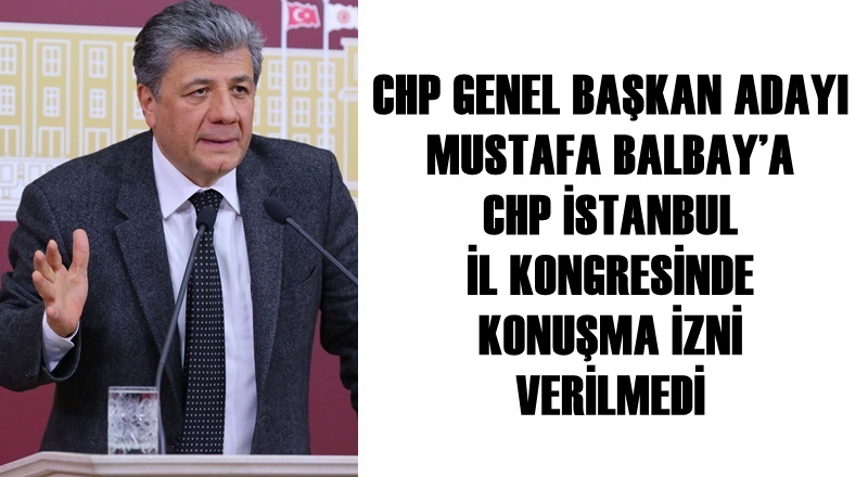 CHP İzmir Milletvekili ve Genel Başkan Adayı Mustafa Ali Balbay’a, bugün gerçekleştirilen İstanbul İl Kongresinde konuşma izni verilmedi.