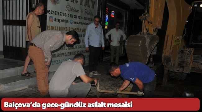 Balçova’da İzmir Büyükşehir Belediyesi’nin desteğiyle gerçekleştirilen asfaltlama çalışmaları için gece-gündüz mesai yapılıyor.