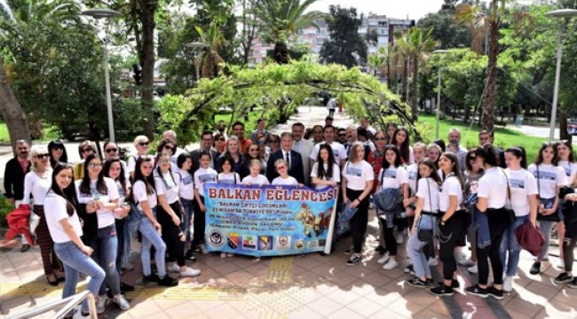 23 Nisan Ulusal Egemenlik ve Çocuk Bayramı için “Balkan Çiftçi Çocukları 23 Nisan’da Türkiye’de” projesi kapsamında Bornova’ya gelen çocuklar Bornova Belediye Başkanı Dr. Mustafa İduğ’u ziyaret etti. Bugün (26 Nisan 2019 Cuma) saat 20.00’de Çamdibi Şehit Er Adem Bilaloğlu Tesisleri’nde düzenlenecek Balkan Eğlencesi öncesindeki ziyarette sıcak mesajlar verildi. Balkan Eğlencesi’nde, Türkiye’ye gelen heyet içinde yer alan 3 folklor ekibinin sahneye çıkacağı belirtildi.