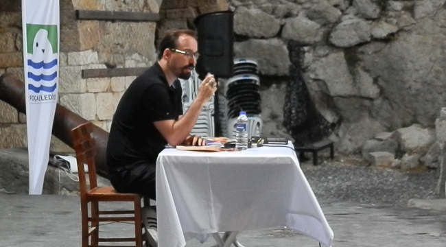 Aydın söyleşi sonunda kitaplarını imzaladı.