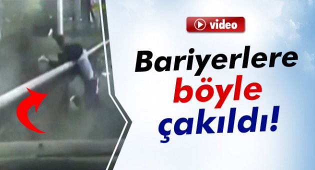 Uçarak bariyerlere çarptı, hiçbir şey olmamış gibi kalktı.