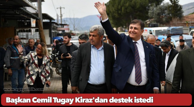 CHP İzmir Büyükşehir Belediye Başkan Adayı Dr. Cemil Tugay, Kiraz'ın köylerini ziyaret etti. CHP Kiraz Belediye Başkan Adayı Nasuh Coşkun ve CHP Kiraz İlçe Başkanı Yücel Çetinkaya'nın da katıldığı programda Başkan Tugay, gördüğü herkesle tek tek sohbet etti. Yaş almış köylülerle bir arada olmanın kendisini son derece mutlu ettiğini dile getiren Cemil Tugay, çocuklarla da ilgilendi. Ziyareti esnasında karşılaştığı Deva Partisi Kiraz Belediye Başkan Adayı Hatice Coşkun’a başarılar dileyen Tugay, “Yıllardır CHP’liyim ama bir rozetim yok” diyen yaş almış bir yurttaşa da altıoklu rozeti taktı. Geldiği Karaburç, Suludere, Ceritler ve Çayağzı köylerinde yoğun ilgiyle karşılanan Başkan Cemil Tugay, kırsal bölgeleri kalkındıracak hamlelerini anlattı.