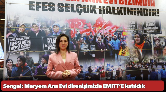 Yerel yönetimlerin tarihi ve kültürel değerlerin tanıtılmasında önemli bir rolü olduğunu belirten Başkan Ceritoğlu Sengel; “Biz 24 Kasım’dan beri Meryem Ana Evi otoparkı için bir direniş içerisindeyiz. Çünkü ekonomik kayyum uygulaması ile karşı karşıyayız. O anlamda da dedik ki, eğer turizm kıymetli ise, eğer tarım kıymetli ise EMITT Fuarı’nın yapılışı eğer turizm anlamındaysa bu turizmi geliştirecek, değiştirecek, yön verecek olan en önemli kamu kurumları yerel yönetimlerdir. Yerel yönetimler zayıflatıldığı süre içerisinde bu gelişimlerin gittikçe azalacağı da bir gerçek. O anlamda biz bu sene “Meryem Ana Evi bizimdir” direnişimiz ile birlikte EMITT Fuarı’na katıldık. Çünkü yerel hizmetlerin ne kadar kıymetli olduğunu, yerinden yönetimin yerindeki değerleri koruyanlar tarafından ne kadar daha büyütülebileceğini de anlatabilmek istiyoruz. Meryem Ana Evi bizimdir. Efes Selçuk’ta mevcut olan direnişi EMITT’TE turizmle ilgilenen tüm kamu kurum ve kuruluşlarına da bu direnişin sebebini anlatmaya geldik” dedi.