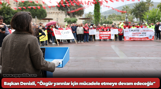 Cumhuriyet Meydanı’nda saygı duruşu ve İstiklal Marşı’nın okunmasıyla devam eden etkinlikte, Çeşme Belediye Başkanı Lal Denizli’nin yanı sıra Türkiye Devrimci İşçi Sendikaları Konfederasyonu (DİSK) Çeşme Şubesi adına Bahar Seli, Emekliler Sendikası (EMEKLİSEN) Çeşme Şube Başkanı İbrahim Tuz, Tüm Belediye ve Yerel Yönetim Hizmetleri Emekçileri Sendikası (TÜMBELSEN) Çeşme Şube Başkanı Volkan Burçak ve Eğitim ve Bilim Emekçileri Sendikası (EĞİTİM SEN) Çeşme Baş Temsilcisi Gülay Canbek birer konuşma yaptı.
