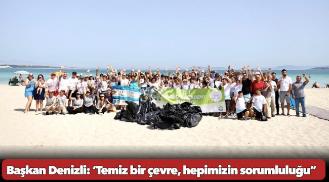 Başkan Denizli, Dünya Çevre Günü’ne ilişkin yaptığı konuşmada, doğanın sunduğu kaynakları korumanın ve gelecek nesillere aktarmanın hepimizin sorumluluğu olduğunu belirterek, “Bugünü, doğaya ve çevreye olan sevgimizi ve sorumluluğumuzu bir kez daha hatırlamak için değerli buluyorum. Bugün, sadece söz vermekle kalmayıp, eyleme geçiyoruz. Ilıca Halk Plajı'nda gerçekleştirdiğimiz kıyı temizliği etkinliğiyle birlikte, doğaya olan sorumluluğumuzu bir kez daha hatırlatmak istiyoruz. Sahillerimizi, denizlerimizi ve doğal alanlarımızı korumak, sadece bugün değil; her gün üzerimize düşen bir görevdir. Gelecek nesillere daha yaşanabilir bir dünya bırakmak için adımlar atmamız gerekiyor. Bilinçli tüketim alışkanlıkları edinmek, geri dönüşümü teşvik etmek ve doğaya zarar veren faaliyetlerden kaçınmak, bu adımların başında geliyor. Bugün burada başlayan bu temizlik seferberliği, yarınki güzel bir geleceğin temelini oluşturacaktır” dedi.