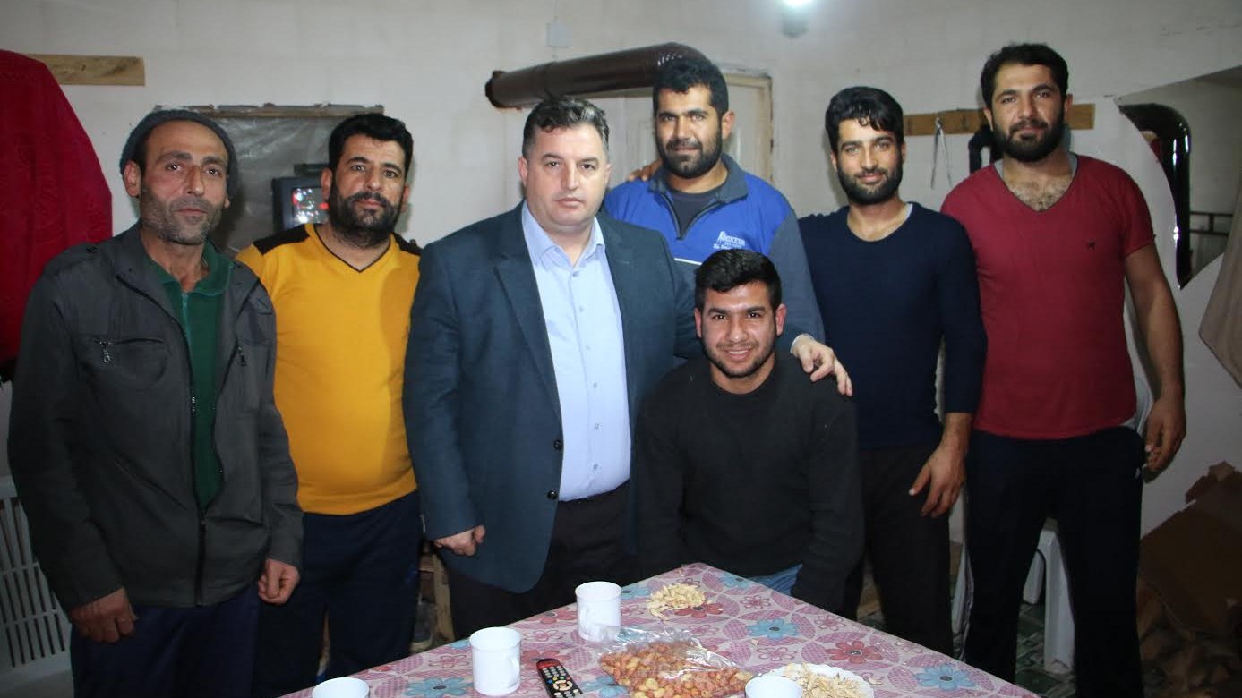 İzmir'in Kınık ilçesinin Ak Partili Belediye Başkanı Sadık Doğruer Yılbaşı akşamı mesaisine ilk olarak TOKİ Kınık şantiyesinde çalışan gurbetçi işçileri ziyaret etti.