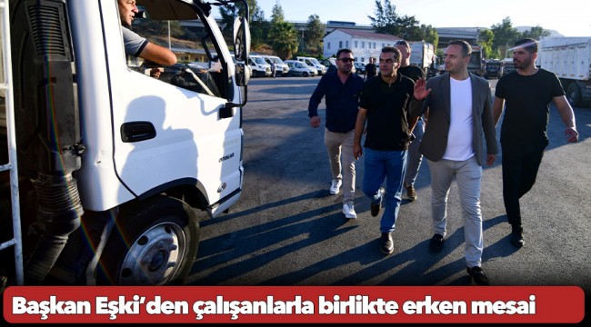 Emekçilerin yanında yer alan Başkan Eşki, sabah erken saatlerde Temizlik İşleri Şantiyesi’ni ziyaret etti. Mesaiye çıkmaya hazırlanan çalışanlarla bir araya gelen Eşki, hem şantiyede hem de sahada yapılan çalışmalar hakkında bilgi aldı. Tüm saha ekipleriyle tek tek tokalaşarak kolaylıklar diledi ve onları mesaiye uğurladı.