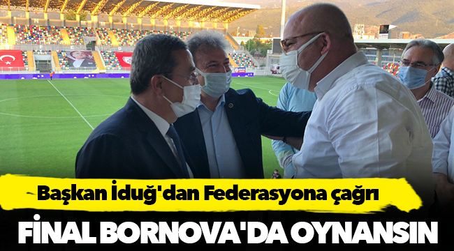 Hem Altay hem de Altınordu'nun iç saha karşılaşmalarını sezon boyunca Bornova Belediyesi Aziz Kocaoğlu Stadı'nda oynadığını hatırlatan İduğ, "Bornova bu finali hakediyor. İki ekipte bu statta ortaya koydukları performansla bu noktaya geldiler. Bu nedenle ki; İzmir futbolu için çok özel olan bu maçın Bornova'da oynanması iki takım açısından da çok anlamlı olacaktır. Türkiye Futbol Federasyonu'nun bu doğrultuda bir karar vereceğini düşünüyorum. Final maçı Bornovamıza çok yakışacak" diye konuştu.