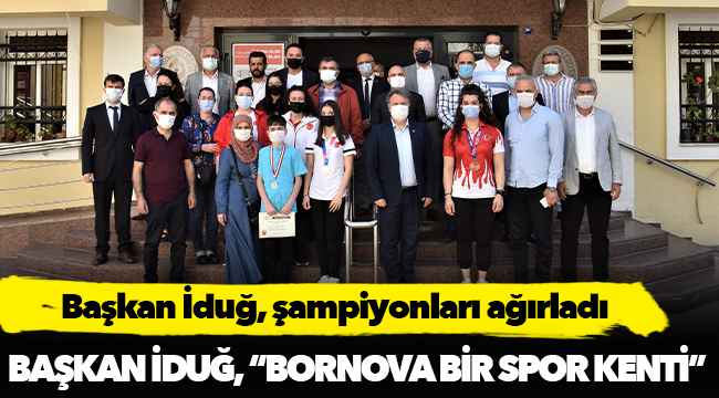 Avrupa Trambolin Cimnastik Şampiyonası gençler senkronize finalinde ikinci olarak, Türkiye'ye ilk gümüş madalyayı kazandıran Bornova Belediyesporlu Sıla Karakuş, Büyükler Avrupa Şampiyonası’nda Halter dalında 3. olarak Bronz madalya kazanan Rabia Kaya ve 2020’de Türkiye Matematik Yarışması’nda 2. olan BELGEM öğrencisi Muzaffer Varlı ile bir araya gelen Başkan İduğ, başarılarının devamını diledi.